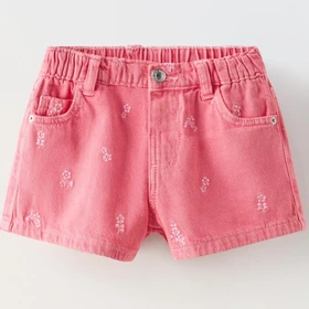 CALCOES BERMUDA DE SARJA COM FLORES BORDADAS