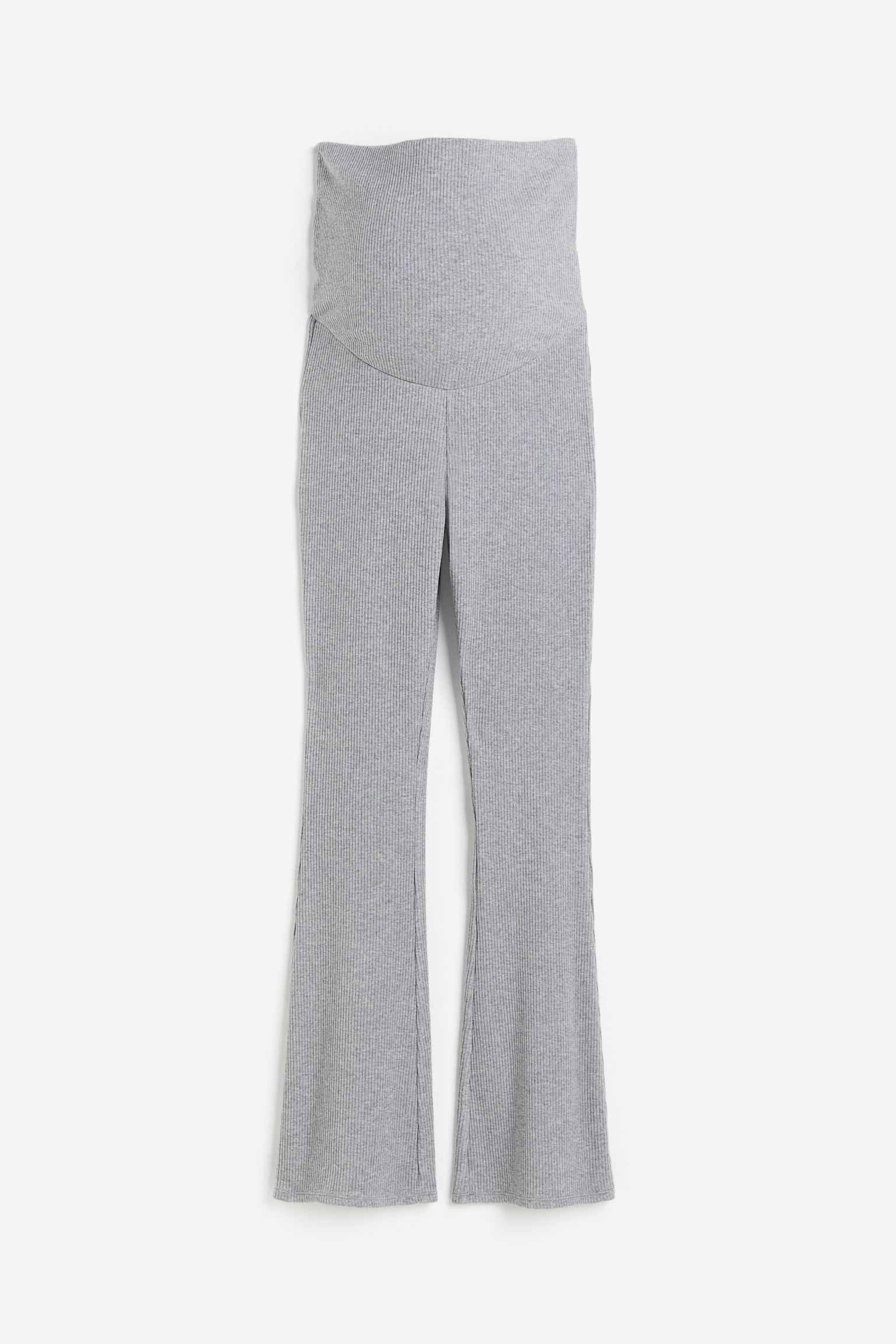 Calças em jersey canelado macio. Cós alto dobrável que oferece um ajuste confortável durante e após a gravidez e pernas retas e largas.