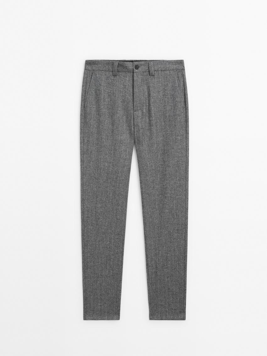 As calças direitas de espiga são elegantes e estruturadas, com um padrão clássico em tecido espinha de peixe, ideal para ocasiões formais e casuais sofisticadas. Esse modelo geralmente apresenta corte reto e cintura média a alta, valorizando a silhueta com um caimento confortável e refinado. Combina muito bem com blusas lisas ou suéteres leves, trazendo um toque de estilo atemporal.