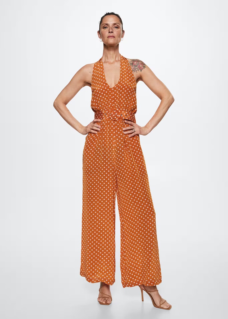 Confeccionado em tecido fluido, este elegante traje destaca-se pelo estampado de bolas. Apresenta um design longo e reto, complementado por uma gola halter que acrescenta um toque sofisticado. O cinto decorativo, com presilhas delicadas, acentua a cintura de forma graciosa. As costas abertas conferem um toque sedutor e moderno ao visual. Uma peça ideal para a coleção de festa e cerimónia, garantindo estilo e elegância em ocasiões especiais.