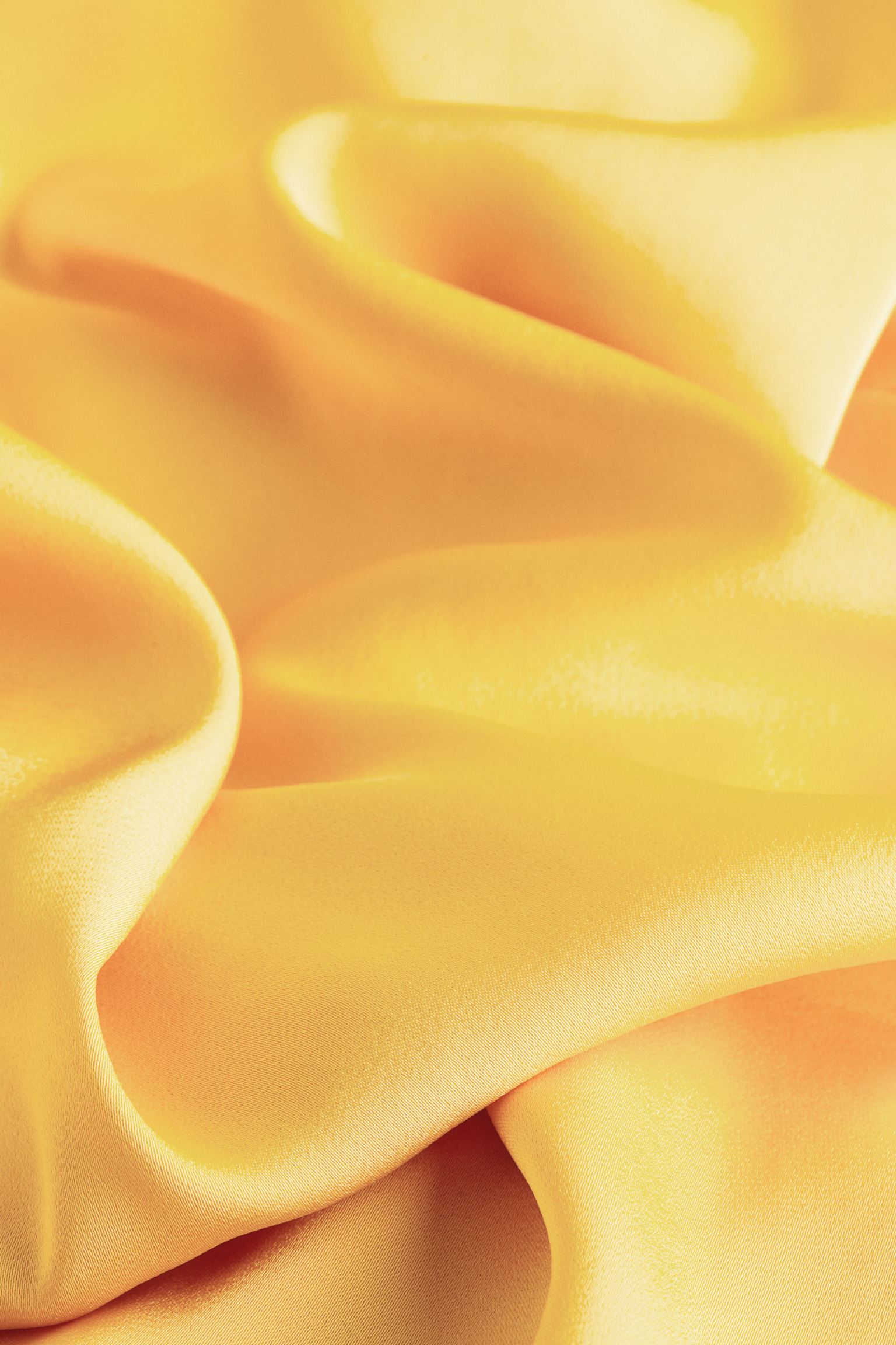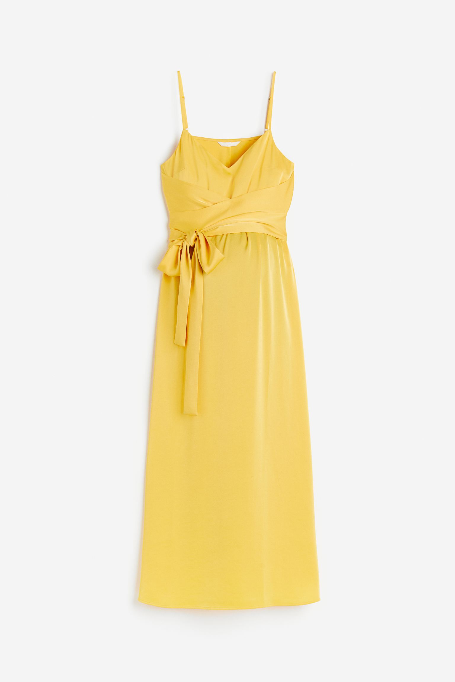 Vestido comprido em cetim fluido com decote coração e alças finas ajustáveis. Cinto de atar largo por baixo do peito e saia de linha A. Forrado no peito.