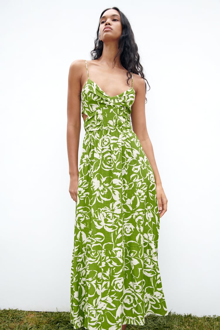 VESTIDO MIDI COM ESTAMPADO CUT OUT – (Verde / Cru)